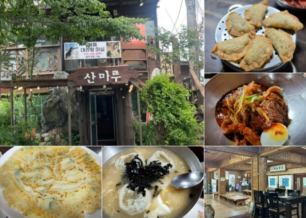 산마루는 다양한 한식 메뉴를 제공하는 곳으로, 특히 해물파전과 김치찌개가 인기예요. 가격은 10,000원에서 20,000원 사이에요.