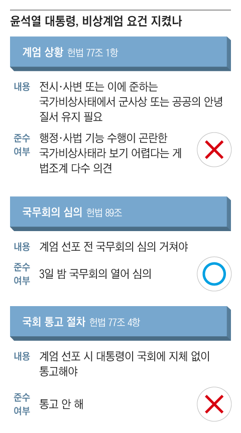 특히, "적과 교전 상태에 있거나 사회질서가 극도로 교란돼 행정·사법 기능의 수행이 현저히 곤란한" 경우에 해당하죠. 이러한 요건이 충족되지 않으면 비상계엄령은 불법으로 간주될 수 있어요.
