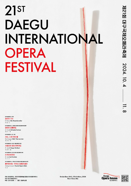 한편, 오는 10월 4일부터 11월 8일까지 펼쳐지는 제21회 대구국제오페라축제의 티켓 예매는 인터파크 콜센터(1661-5946), 대구오페라하우스 홈페이지와 인터파크 홈페이지를 통해 가능하다.